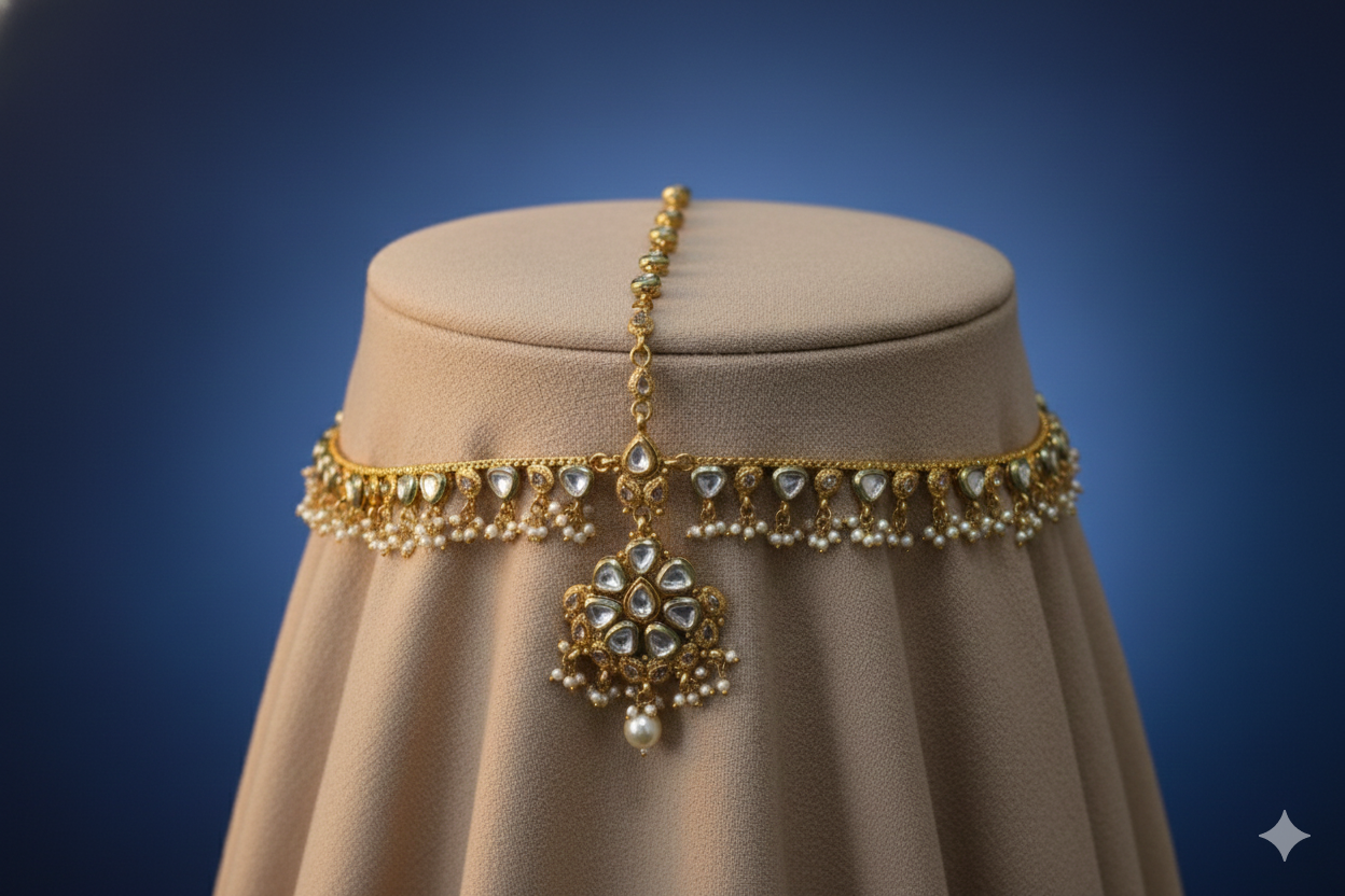 classic kundan shishpatti for a regal bridal statement . because every bridal deserves a royal crown ..